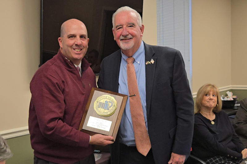 “It was 2004 when Dan rolled onto this committee,” said RIIL Executive Director Mike Lunney, as he presented Warner with a commemorative plaque at the November 17th meeting in the RIIL office. “That was quite a few years ago. I was an athletic director at the time and just getting involved at the state level, and I know that the amount of institutional knowledge that Dan has is immense. So we’re definitely going to miss that, and his leadership of this organization during a really difficult time, as well. These past few years have been really challenging, and you’ve had a steady hand in leading us through all of that.”