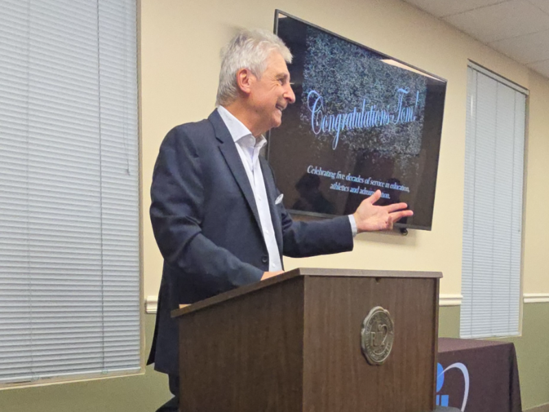 The final item of business at the Principals’ Committee on Athletics’ November meeting was a bittersweet one as its members recognized outgoing chairperson Dan Warner for his more than 20 years of dedication and service both to the Rhode Island Interscholastic League’s governing body and to the tens of thousands of high school and middle school students across the state who play interscholastic athletics.