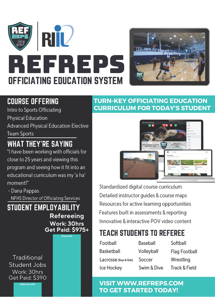 The RIIL is excited to announce a partnership with RefReps, which provides standardized officiating education curriculum to classrooms all across the country. We are happy to have them joining us here in Rhode Island! |
