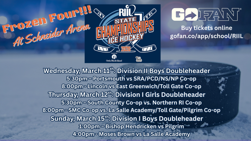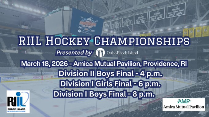 The Rhode Island Interscholastic League and Amica Mutual Pavilion are pleased to announce that the finals of the 2026 RIIL Girls and Boys Ice Hockey Championships, presented by Ortho Rhode Island, will be played at The AMP on Wednesday, March 18, 2026.